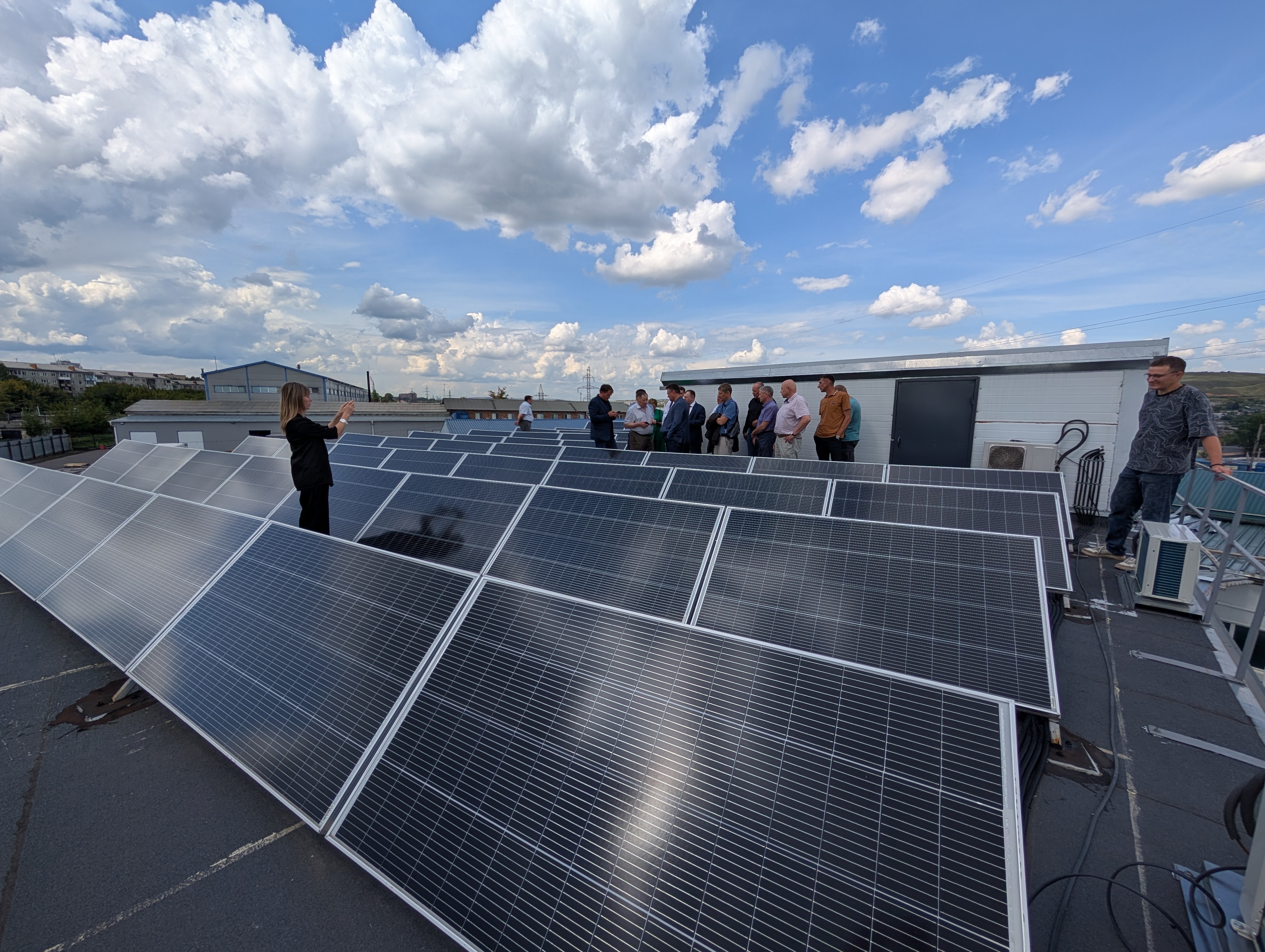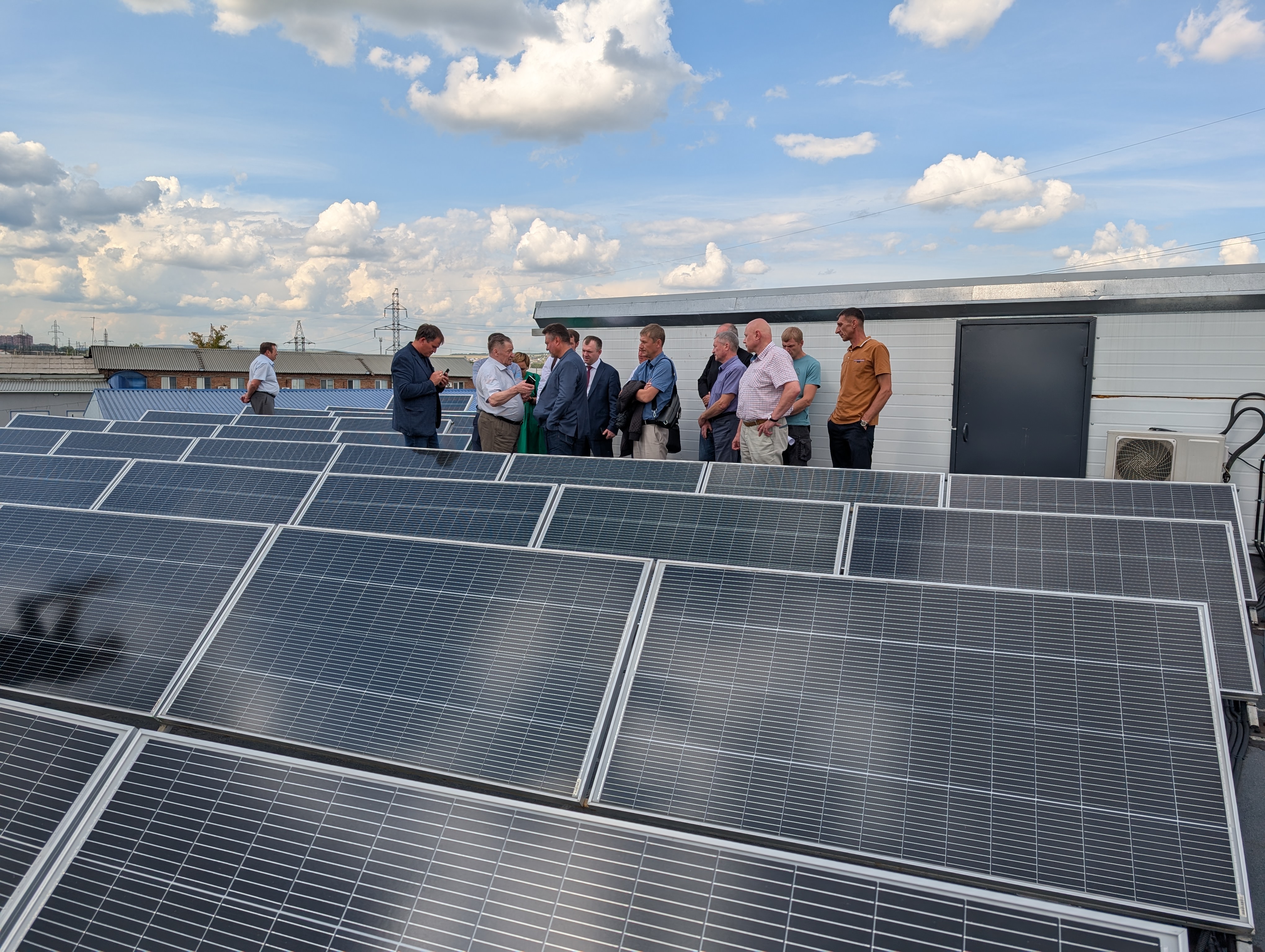 19 августа 2025 года на площадке ООО «Еонесси К» (Красноярский лифтовой завод) члены «Союза ПЖКХиЭ» Красноярского края ознакомились с реальным опытом эксплуатации собственной солнечной генерирующей станции мощностью 120 кВт и обсудили реализацию инвестиционного проекта по устройству солнечной станции мощностью 15 кВт на многоквартирном доме по адресу: г. Красноярск, ул. Алексеева, д. 14.
